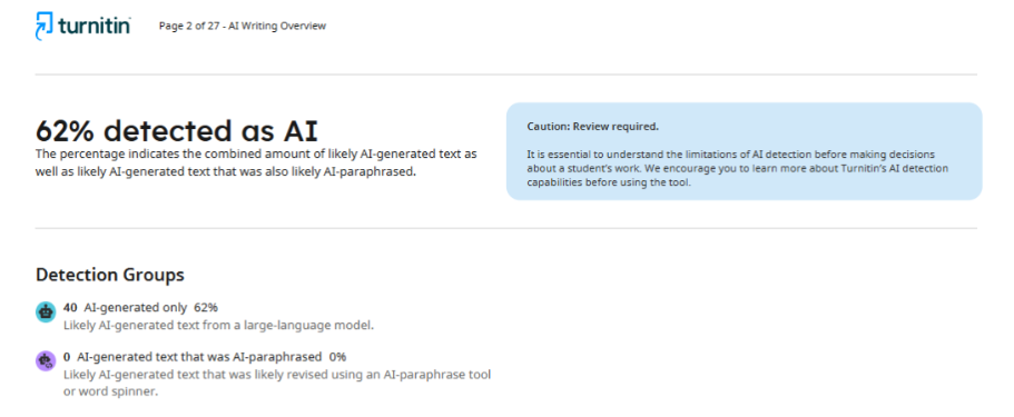 Что касается второго журнала, то после проверки статьи он предоставил автору отчет, в котором было указано 62% использования ИИ. Такая непоследовательность в результатах указывает на то, что детекторы не могут обеспечить стабильную и точную оценку, а их способность определять, использовались ли технологии искусственного интеллекта в процессе написания, остается под вопросом.